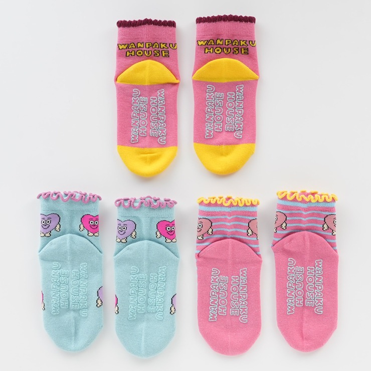 キッズ 3足組ショートクルーソックス(15-20cm WANPAKU HOUSE)