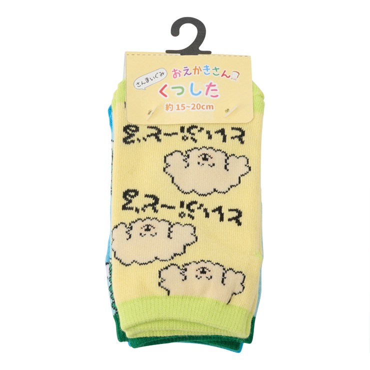 ゆるくてかわいい世界観が大人気!親しみやすいキャラクターがデザインされた「おえかきさん」の子供用靴下です。