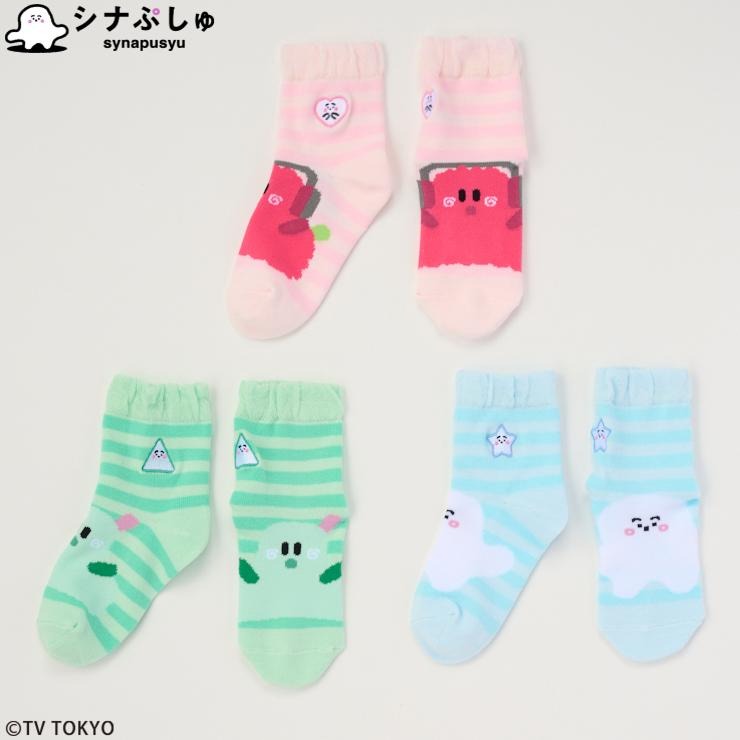 キッズ 3足組クルーソックス(13~18cm・シナぷしゅ)