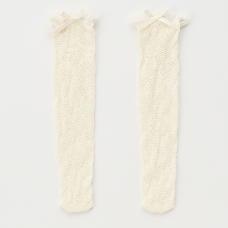ラッセルレースで編み上げたガーリーなハイソックス。