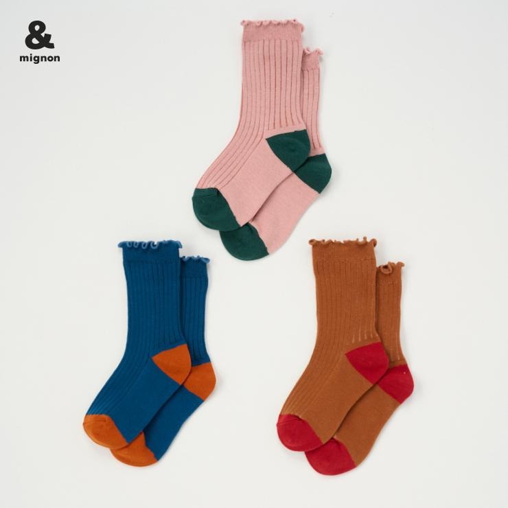 キッズ 3足組クルーソックス(15~20cm &mignon)