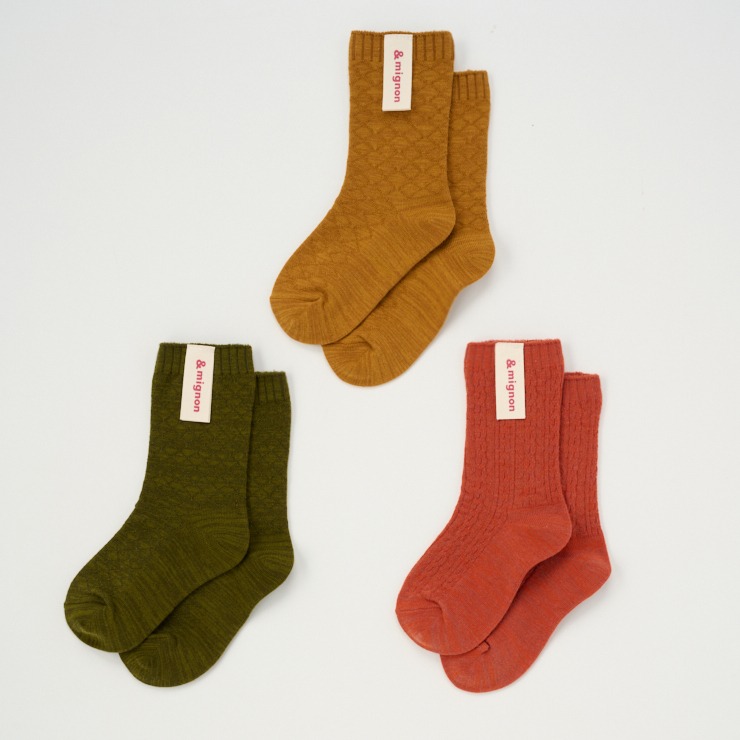 キッズ 3足組クルーソックス(15~20cm &mignon)