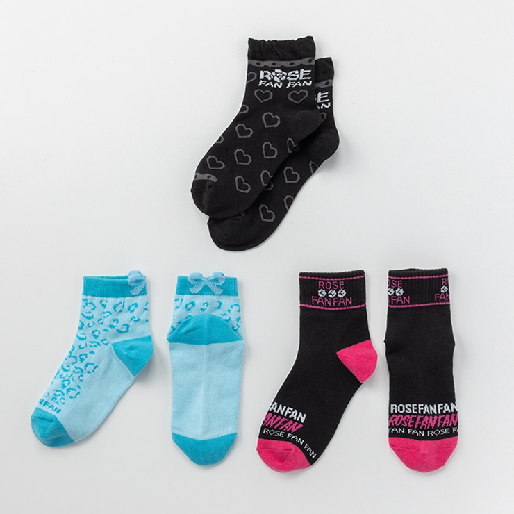 ジュニア 3足組クルーソックス(19-24cm ROSE FAN FAN)