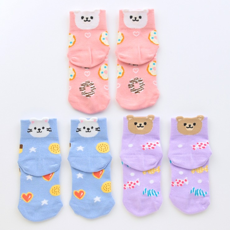 キッズ 3足組ショートクルーソックス(15-20cm・ポリジン)