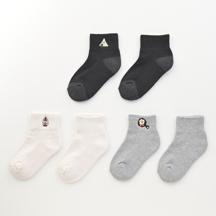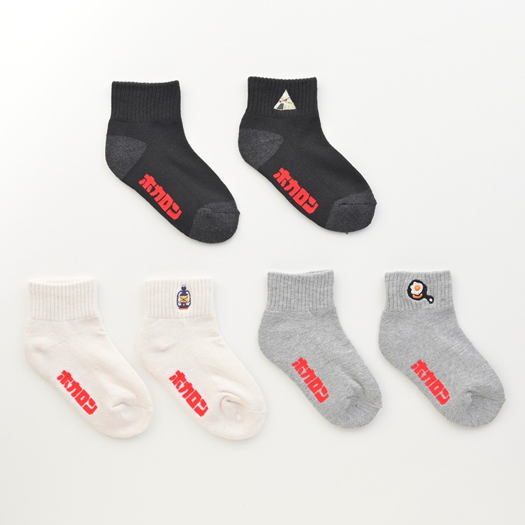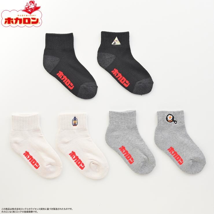 キッズ 3足組ソックス(15-20cm 19-24cm ホカロン×テンモン家族)