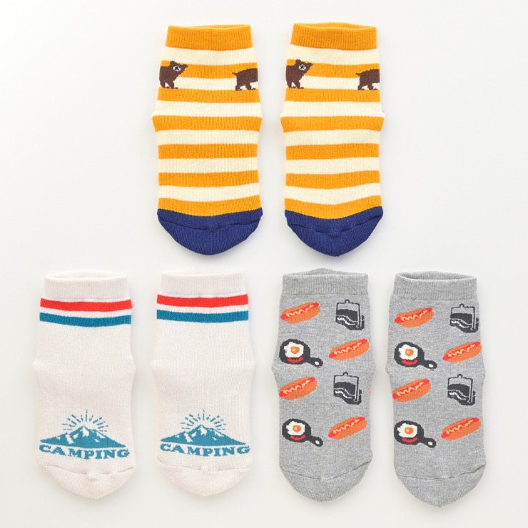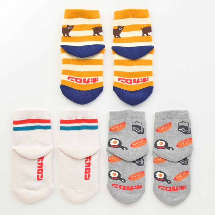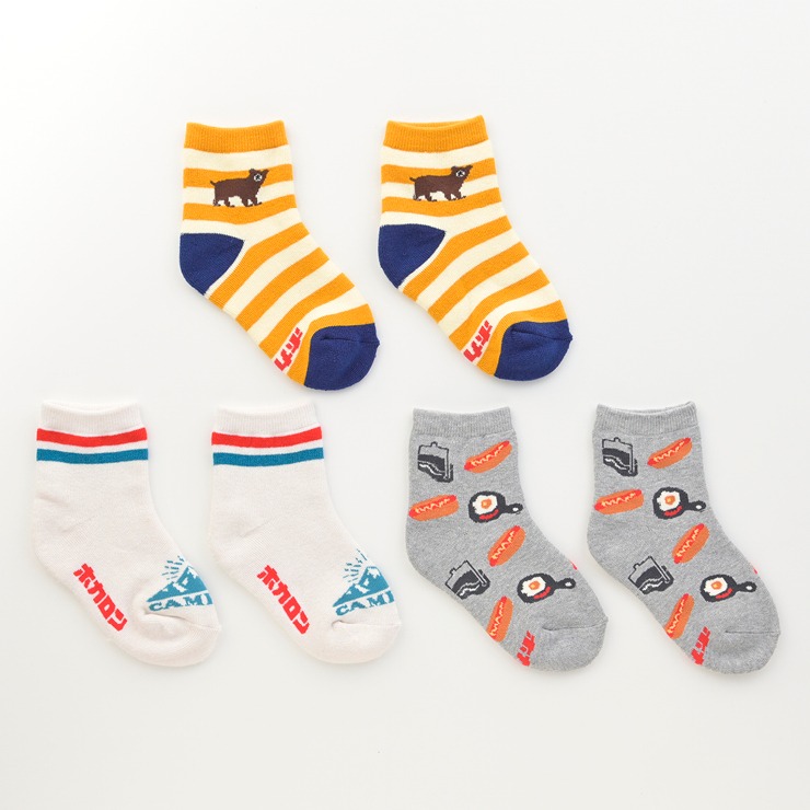 キッズ 3足組ソックス(15-20cm 19-24cm ホカロン×テンモン家族)