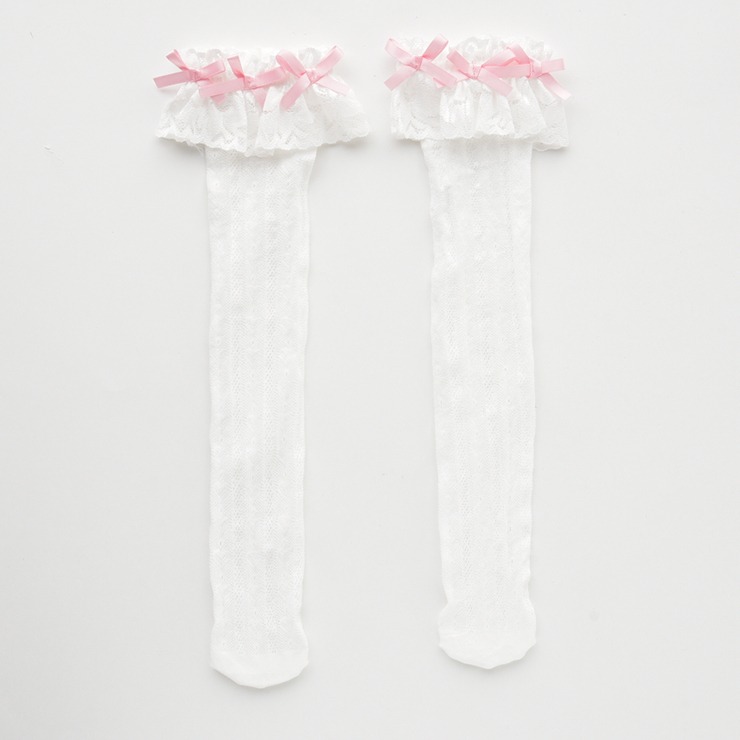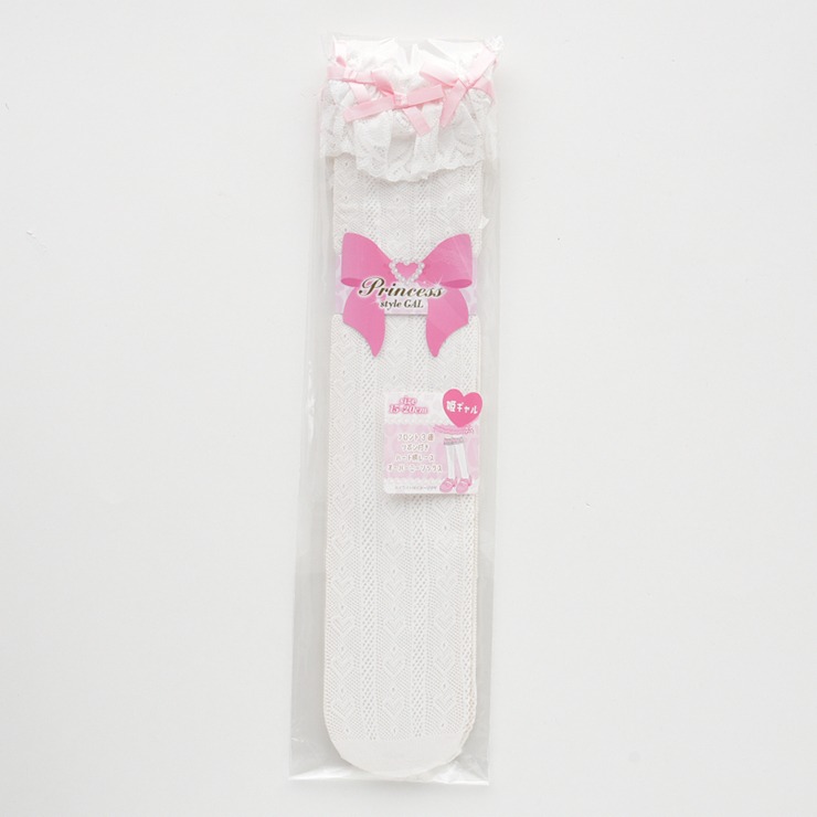 小さめのかわいいリボンが3つも付いたハート柄のラッセルオーバーニーソックスです♪