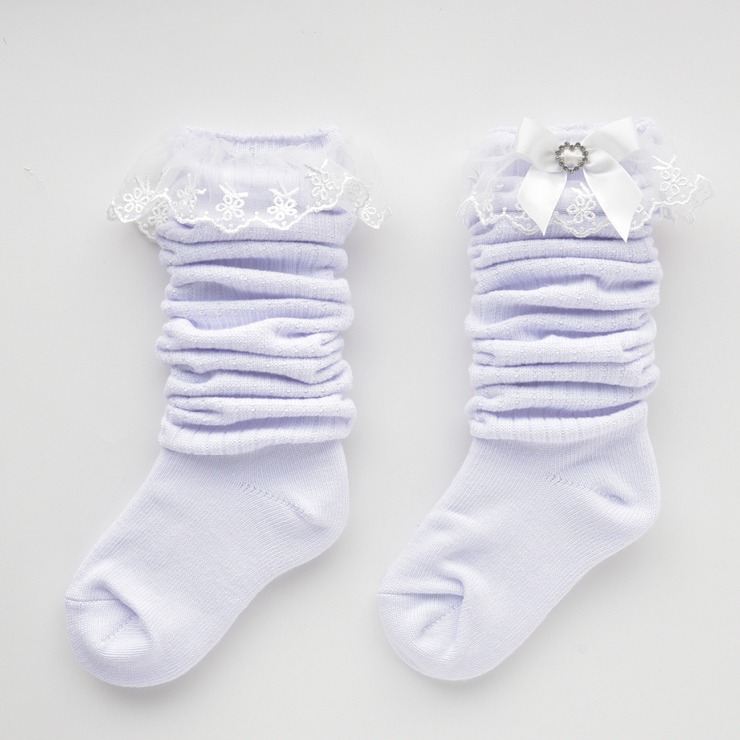 キラキラハートモチーフの付いた大きなリボンと上品なレースが付いたルーズソックスです♪