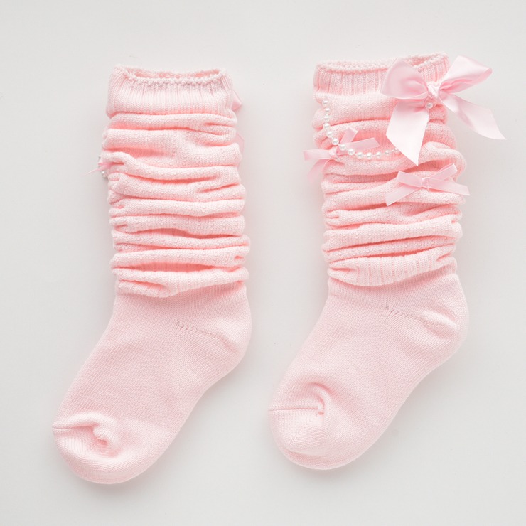 沢山のリボンとフェイクパールが付いたガーリーなルーズソックスです♪