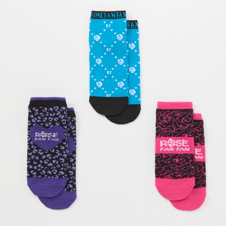 ジュニア 3足組スニーカーインソックス(19-24cm ROSE FAN FAN)