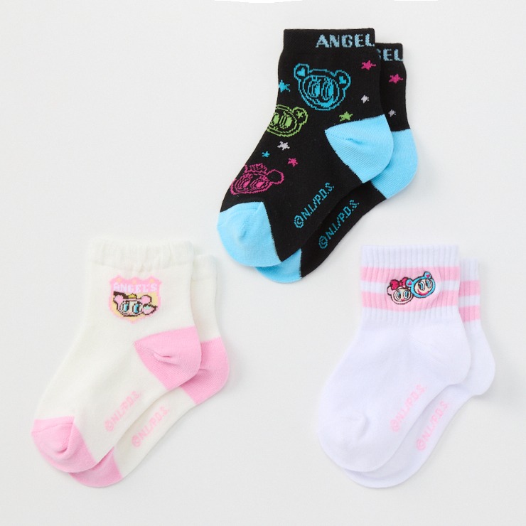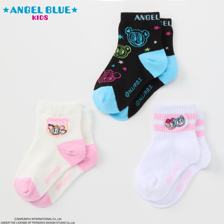 キッズ 3足組クルーソックス(15-20cm エンジェルブルーキッズ)