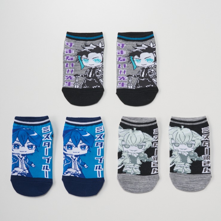 【すまない先生】【ミスターブルー】【ミスター銀さん】の3足組ソックスです。