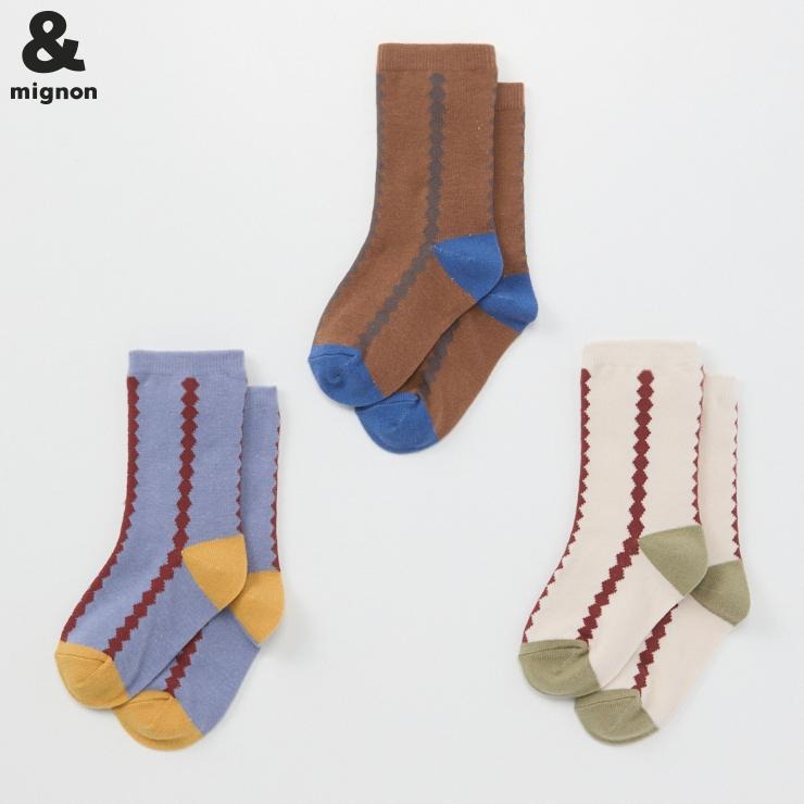 キッズ 3足組クルーソックス(15~20cm &mignon)