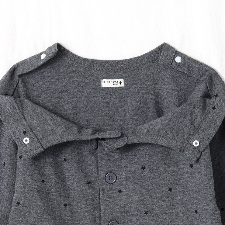 お着替えがしやすいようにスナップボタン式の前開き仕様になっています。