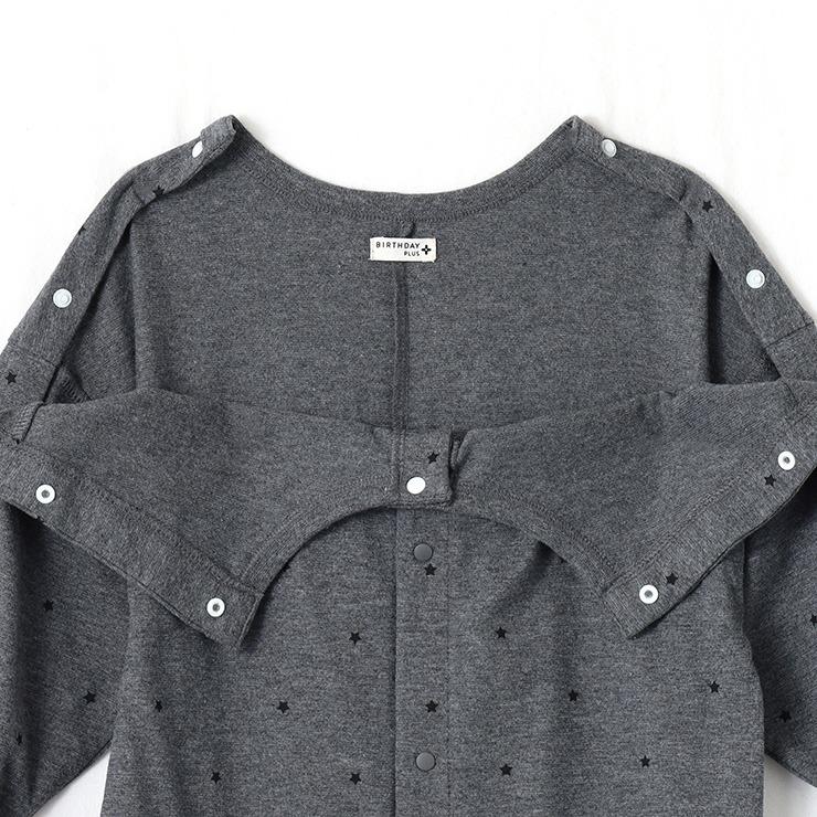 お着替えがしやすいようにスナップボタン式の前開き仕様になっています。