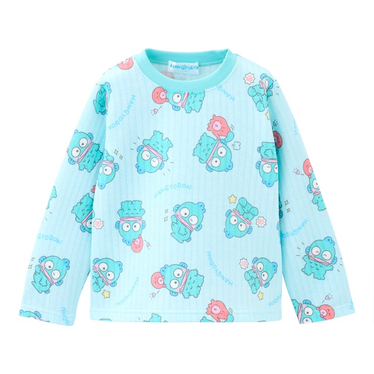 大人気 サンリオキャラクターズより ハンギョドン長袖パジャマが登場。 ハンギョドン総柄プリントした上着と総柄ロングパンツです。