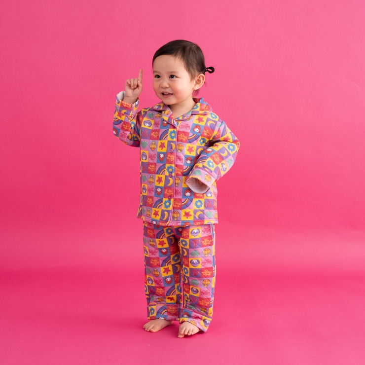 中綿がはいってあたたかみのあるキルティング素材を使用したパジャマセット商品です。