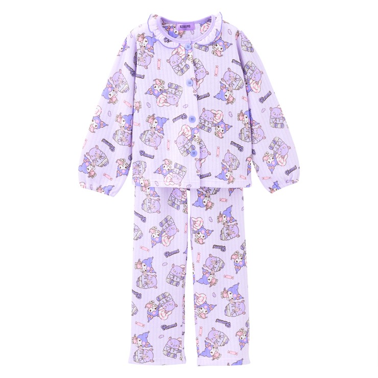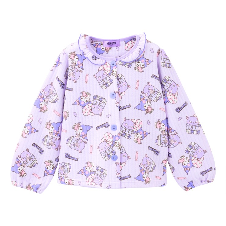 大人気 サンリオキャラクターズより クロミ長袖パジャマが登場。 クロミ総柄プリントし襟もとにフリルがついたシャツと総柄ロングパンツです。
