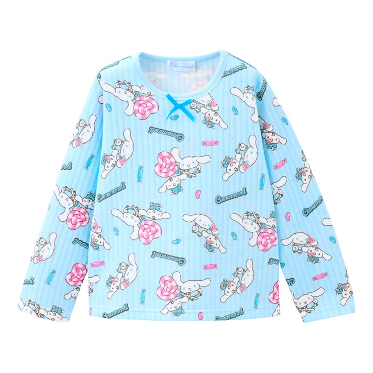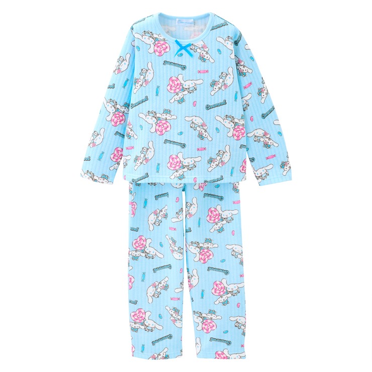 大人気 サンリオキャラクターズより シナモロール長袖パジャマが登場。 シナモロール総柄プリントした上着と総柄ロングパンツです。