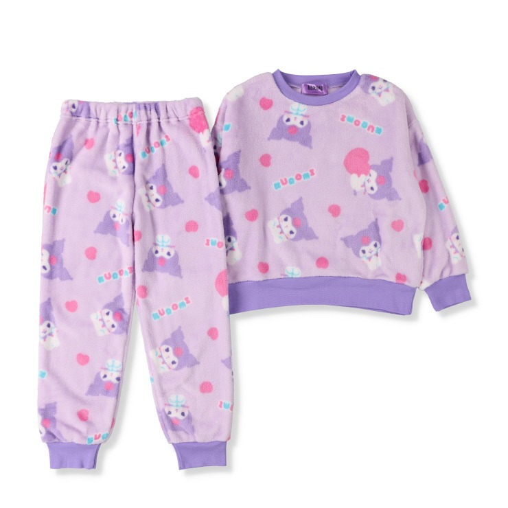 大人気 サンリオキャラクターズより クロミ長袖パジャマが登場。 フリースあったか素材にクロミの総柄プリントした上着と総柄ロングパンツです。