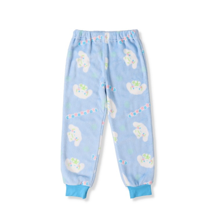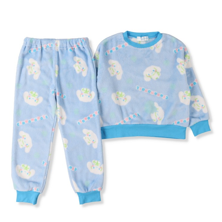 大人気 サンリオキャラクターズより シナモロール長袖パジャマが登場。 フリースあったか素材にシナモロールの総柄プリントした上着と総柄ロングパンツです。