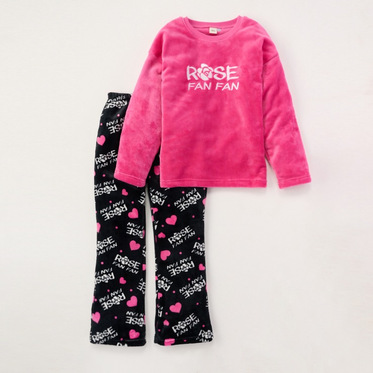 ROSE FAN FANのロゴのトップスとパンツの相性が抜群に可愛く、素材はミンクフリースなのでこれからの季節にぴったりです!
