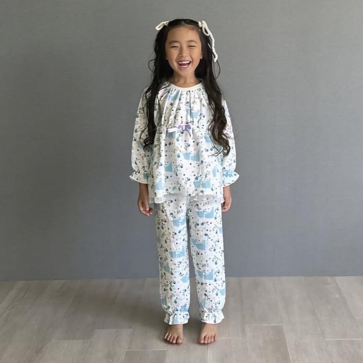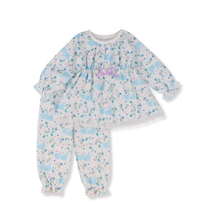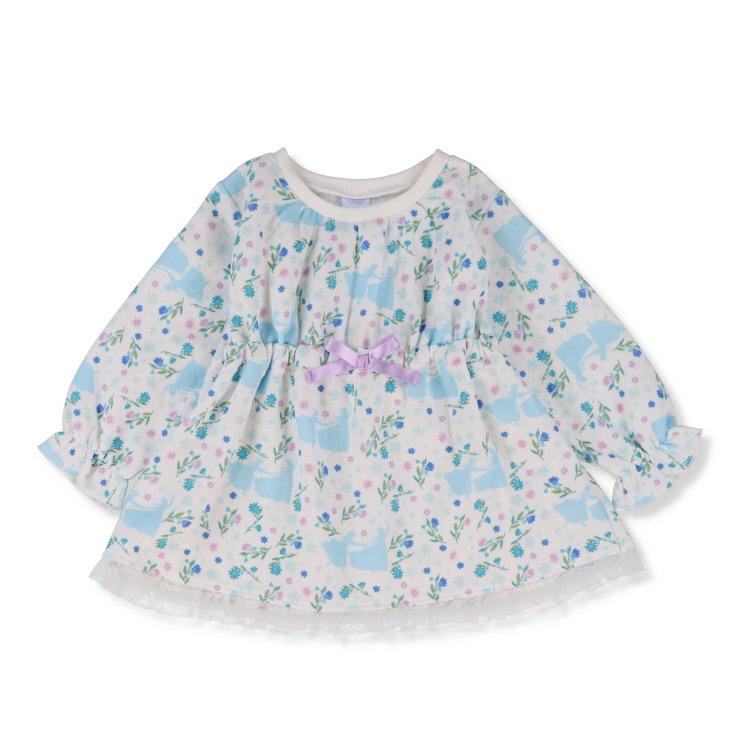 チュニック丈のトップスに裾レースと女の子が喜ぶデザインになっています。