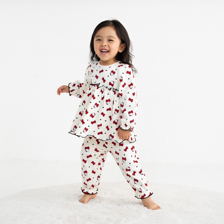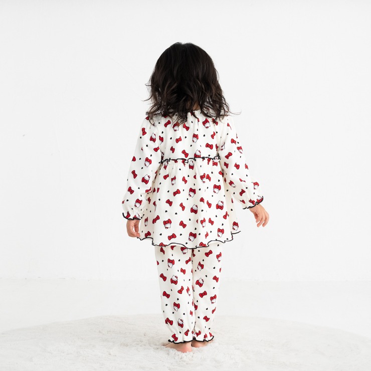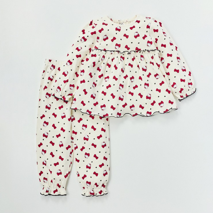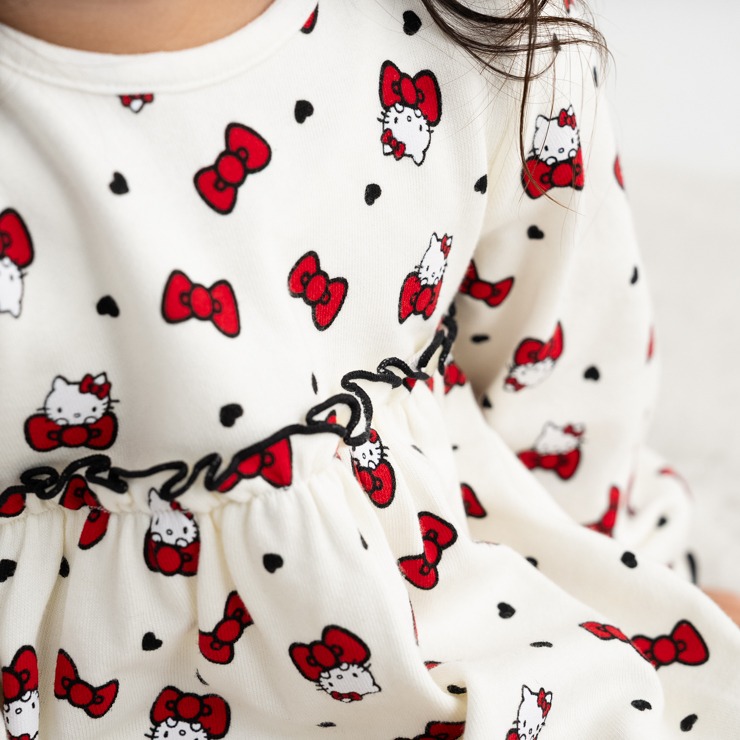 「キティ」とリボンがいっぱいのキュートな総柄プリントになっています。