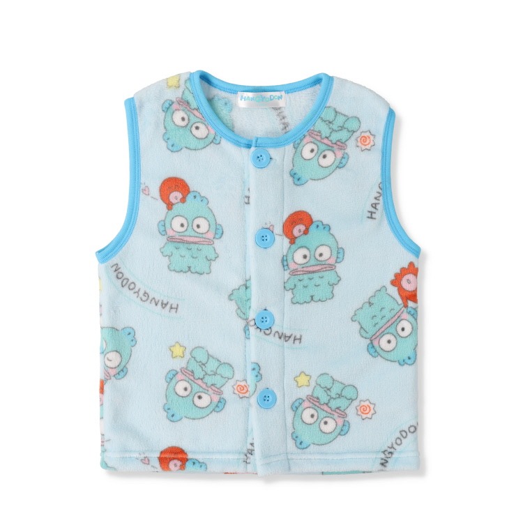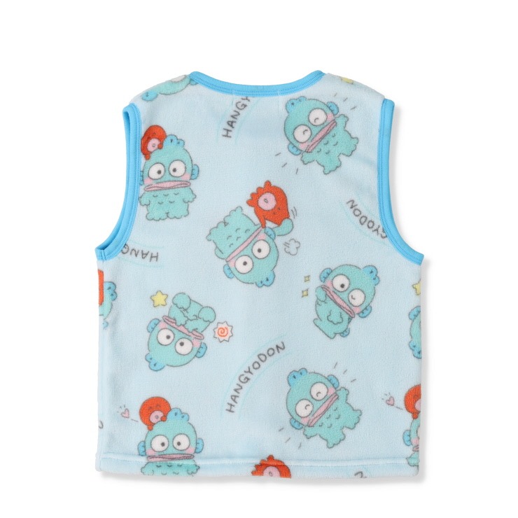 大人気 サンリオキャラクターズより ハンギョドンベストが登場。 フリースあったか素材にハンギョドンの総柄プリントしたベストです。