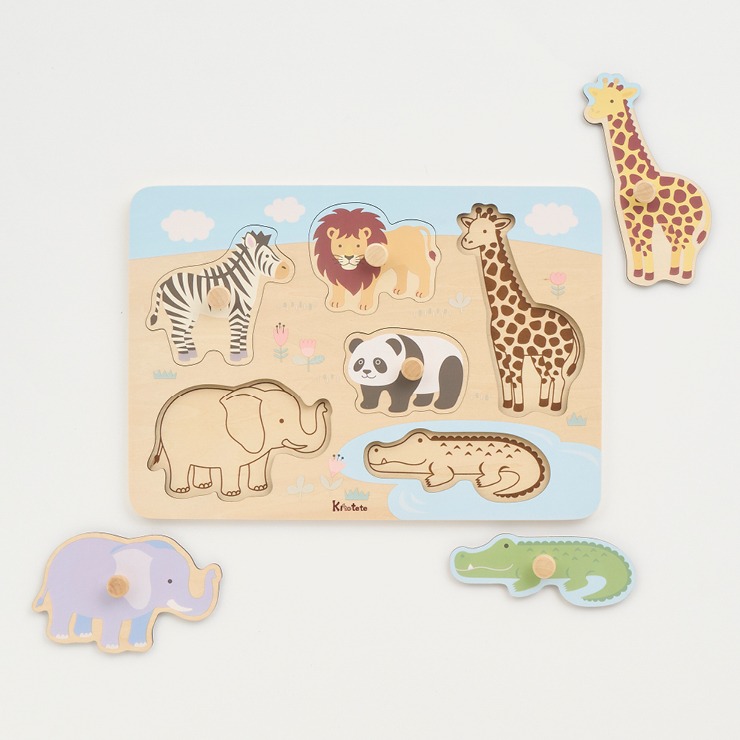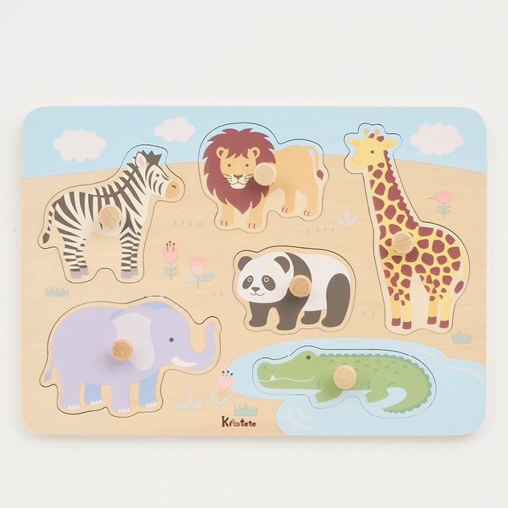 どうぶつのなまえわかるかな?えのかたちや大きさをよくみてピースを型にはめよう!持ち手がついてとりはずしかんたん!
