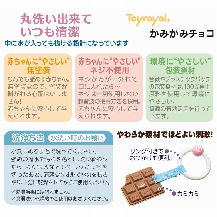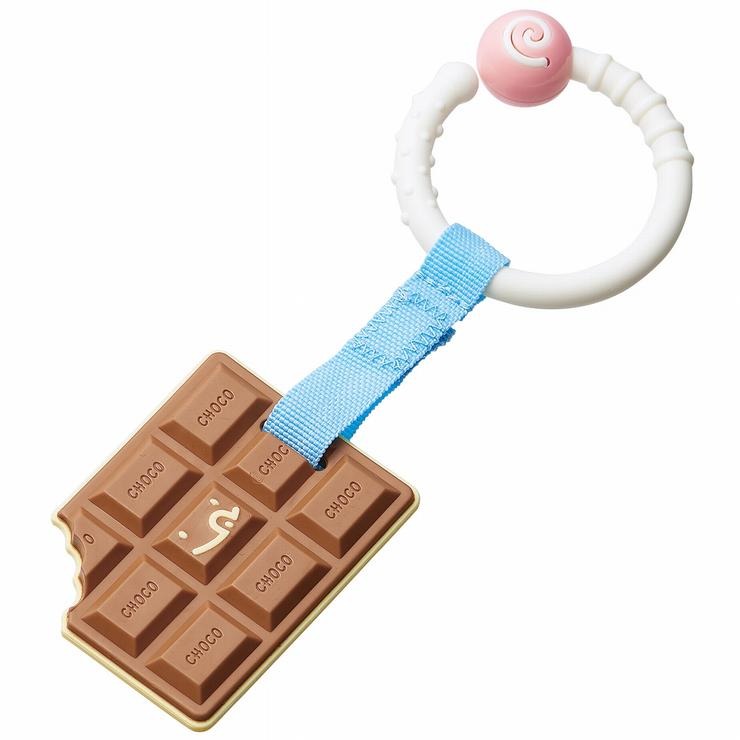 なんでも舐める赤ちゃんに水洗い可能な洗えるラトルシリーズが新登場!無塗装、ネジ不使用、再生包装資材仕様のシリーズです。チョコ部分はやわらかい材質です。ベビーカーに取付ておでかけにも対応可。