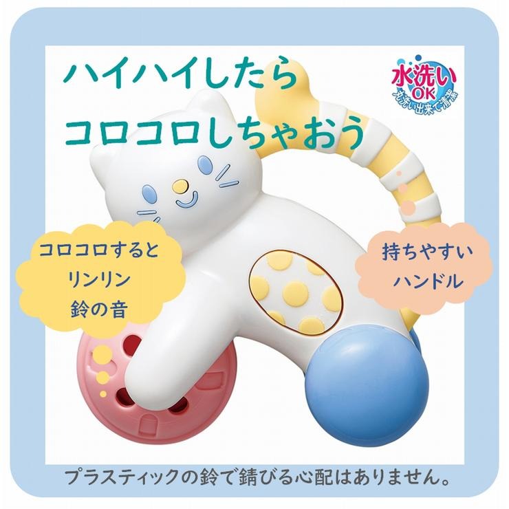 なんでも舐める赤ちゃんに水洗い可能な洗えるラトルシリーズが新登場!無塗装、ネジ不使用、再生包装資材仕様のシリーズです。滑りにくく握りやすいネコさんしっぽの持ち手で振るとリンリン、コロコロ
