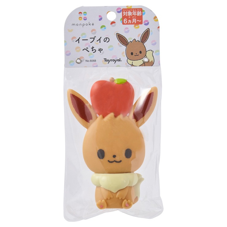 大人気のぺちゃシリーズから、いよいよイーブイが登場、やわらか素材で押すとぴゅ~っと笛が鳴るよ!