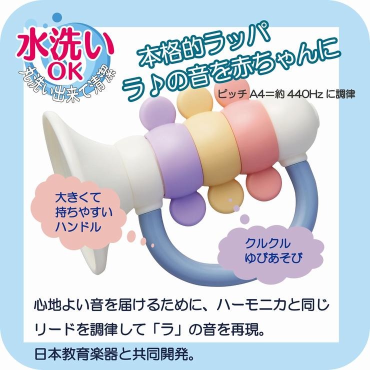 なんでも舐める赤ちゃんに水洗い可能な洗えるラトルシリーズが新登場!無塗装、ネジ不使用、再生包装資材仕様のシリーズです。ハーモニカにも使用されている本格的なリード弁で心地よいラ♪の音を再現!吹くことでしゃべることに必要な口腔内の筋肉の発達を促します。