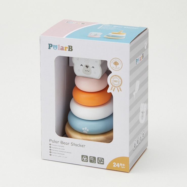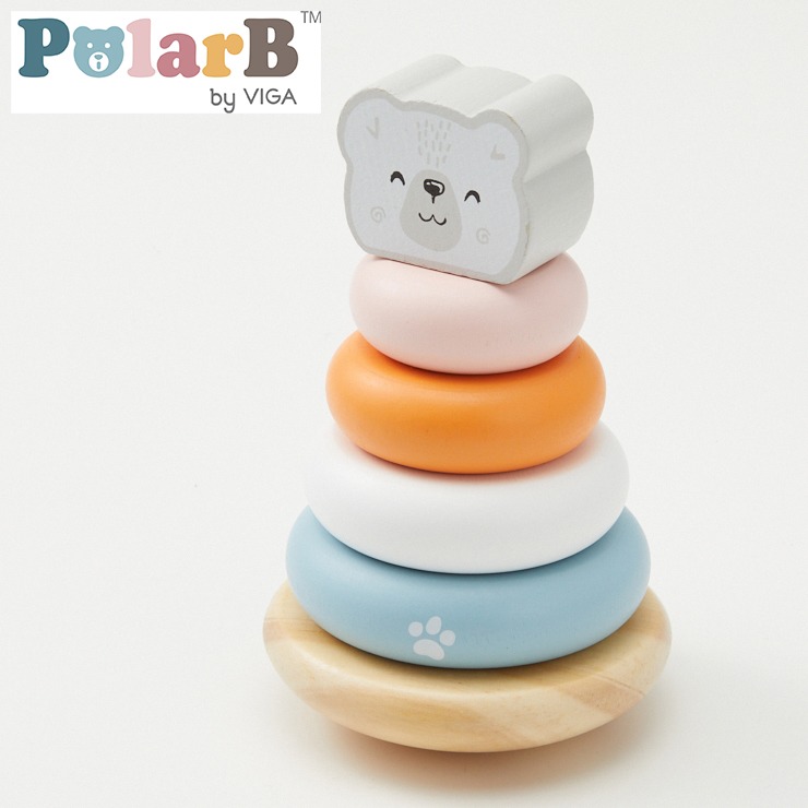 子どもの手になじみやすい、ころんとしたフォルムのしろくまスタッカー。
