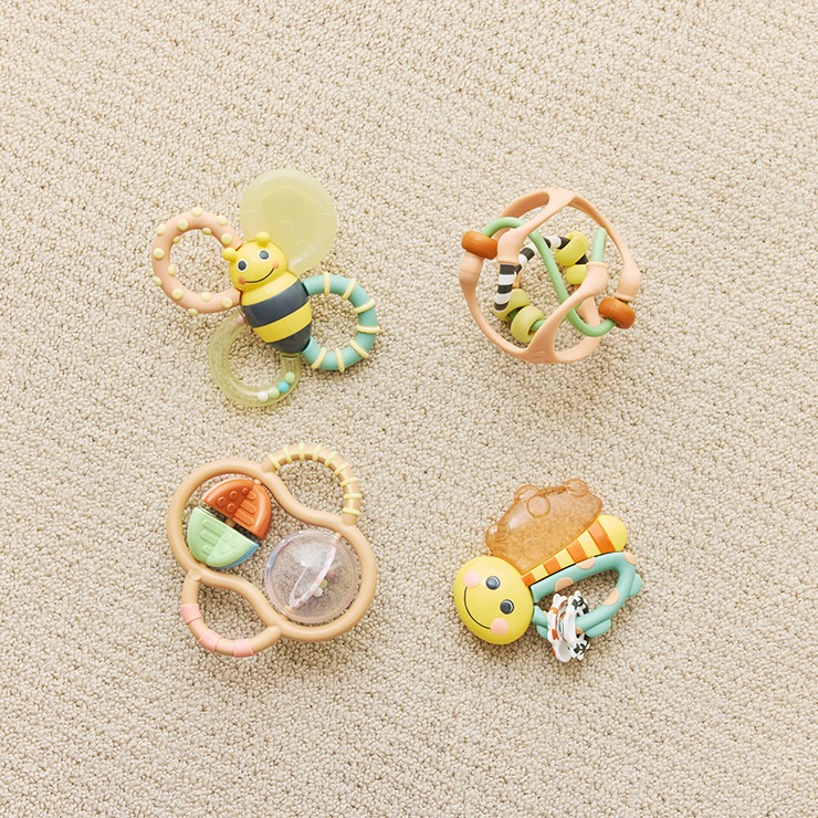 丸いボールの中にはビーズが入って、おもちゃを振るたびにカラカラ音も。