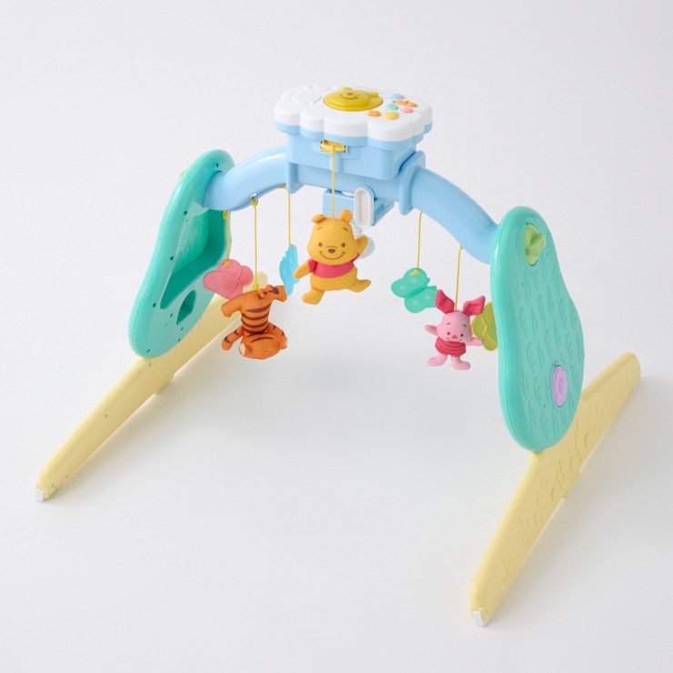 赤ちゃんの成長に合わせて長く使える、くまのプーさんのメリー・ジムです。