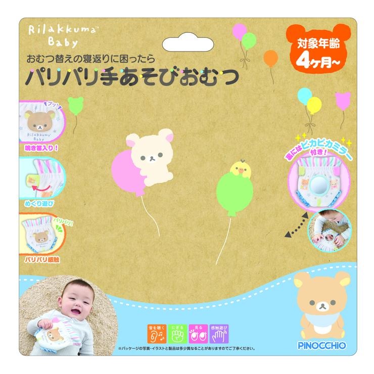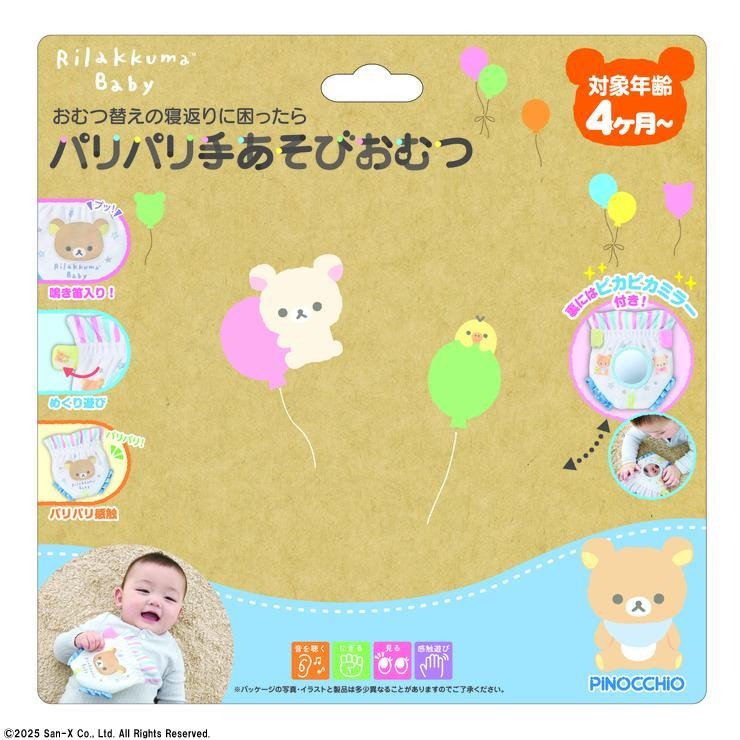 ● 左右についているおむつテープをめくると、リラックマとコリラックマがひょっこり。めくり遊びができます。