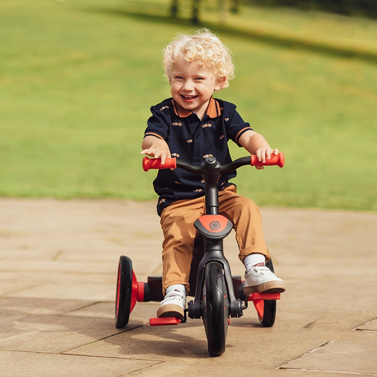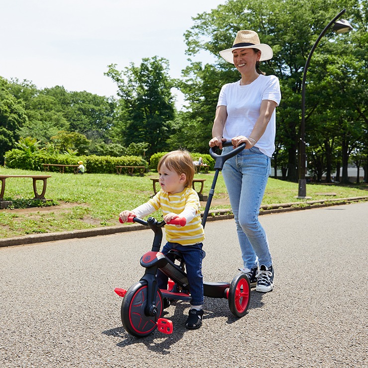 後ろのコントロールバーが外れ、お子さまが自分の足でペダルを漕いで進みます。