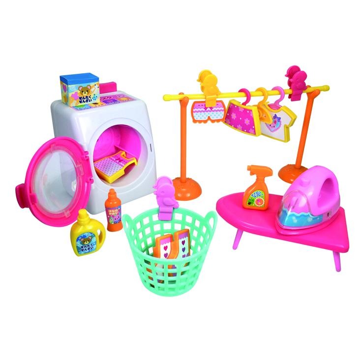 ・アイロンとアイロン台や物干し竿、洗剤のミニチュアなど、お洗濯ごっこの付属品がはいっています。