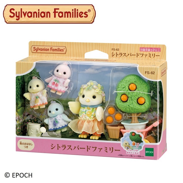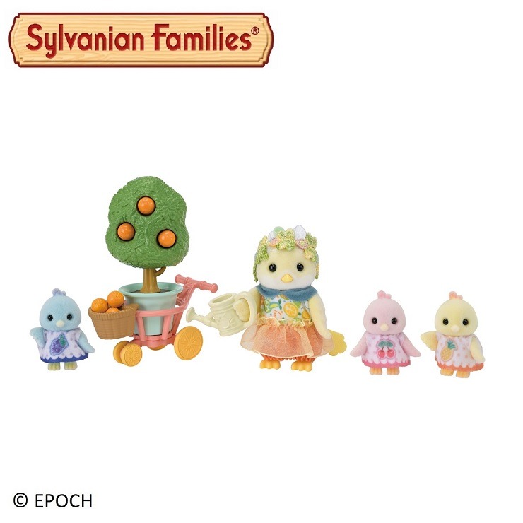 フルーツみたいにポップなカラーとフォルムが特徴のシトラスバードファミリーです。お母さん、赤ちゃん3にんとフルーツの収穫遊びが楽しめるセットです。