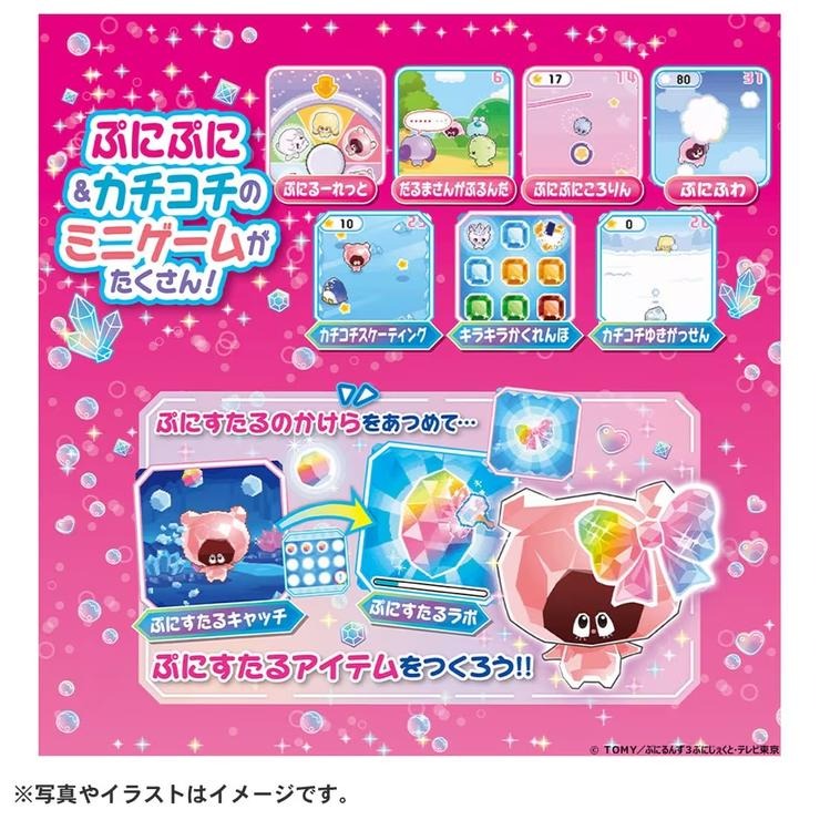 ・「ぷにフレベル」「カチフレベル」を鳴らすと、ぷにともがあそびに来るよ!あそびにきたぷにともはぷにぷにしたり、ジャンプさせたりしてあそぼう!「ぷに写メ」もとれるよ♪