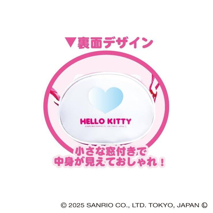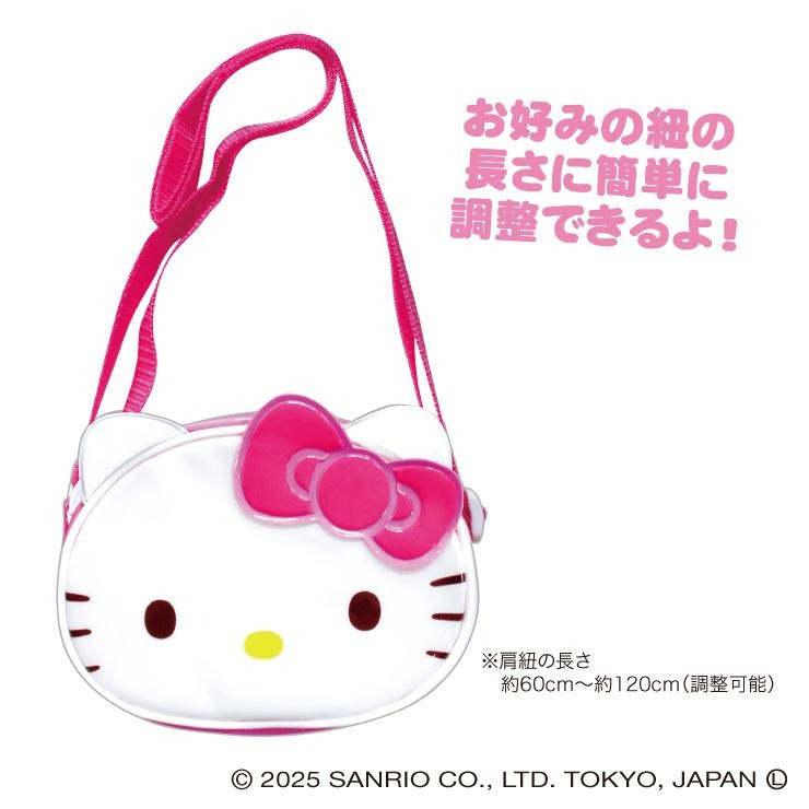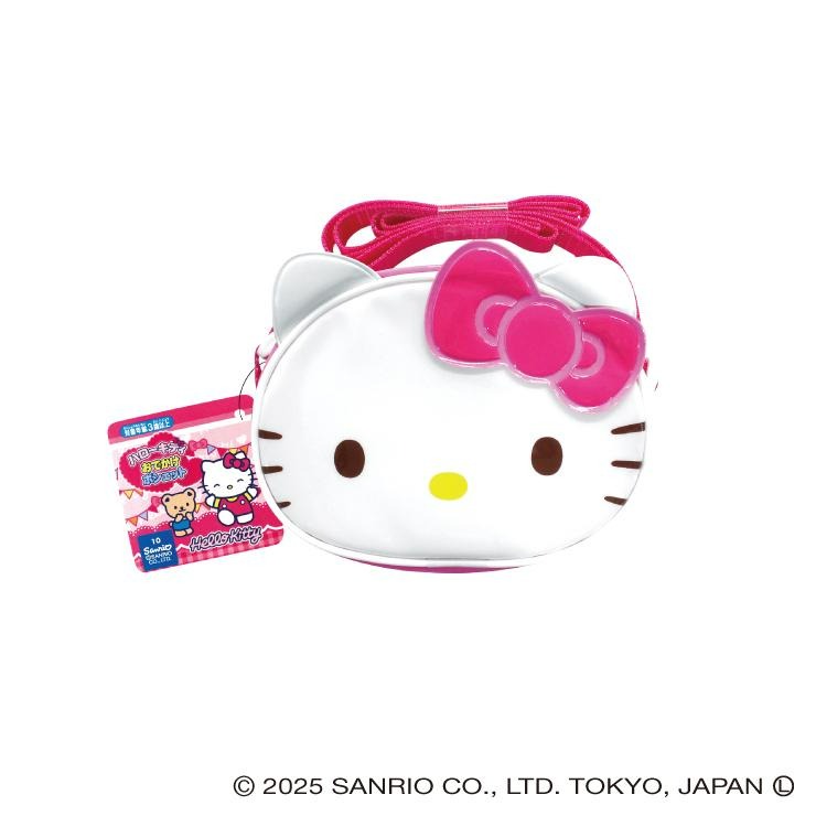 ハローキティの顔の形をした、ファスナー付きのかわいいおでかけポシェットです。ストラップが付いていますので、お出かけに便利です。対象年齢3歳以上。
