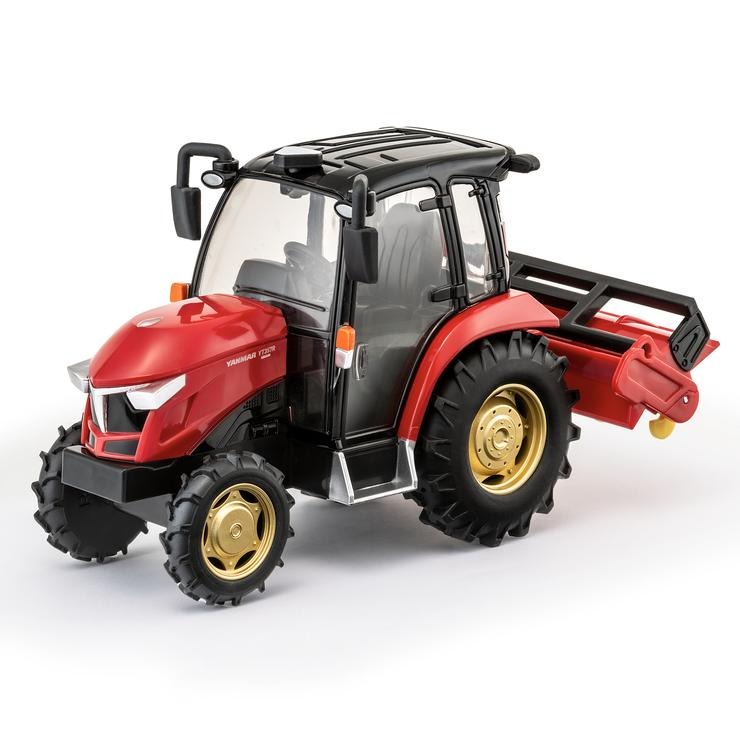 ・タイヤを床などに押し付けながら、何度か前へスライドさせて手を離すと走り出す、「フリクション走行」で走るヤンマートラクターです。