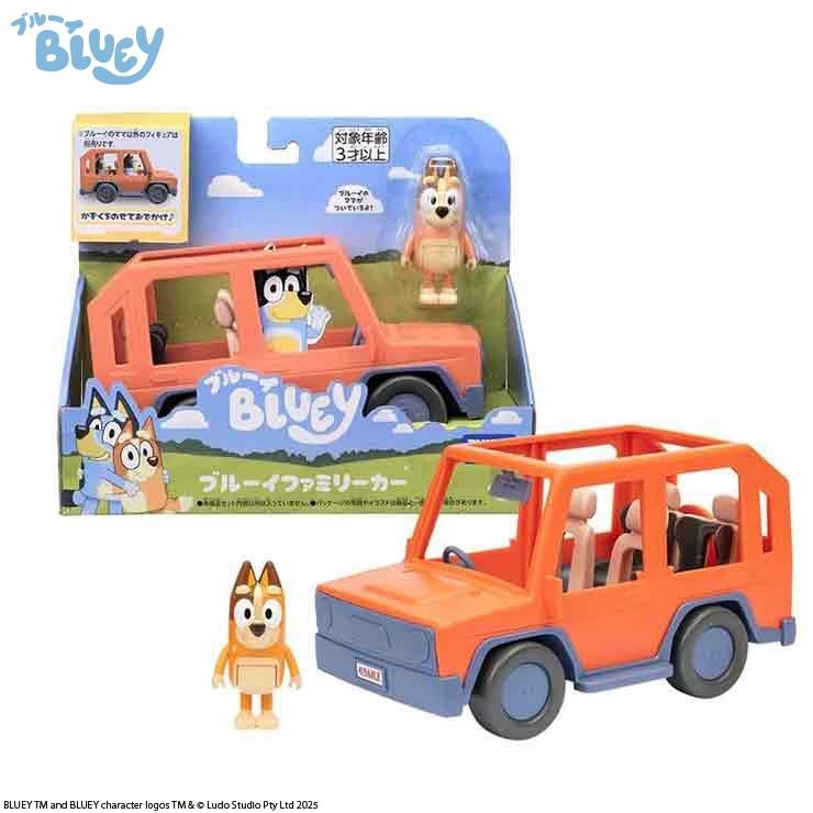 アニメ「ブルーイ」の商品が登場! アニメのエピソードにそった、ブルーイファミリーが乗る4WDカーです。ママのフィギュア1体がついています。
