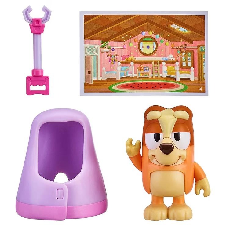 アニメ「ブルーイ」の商品が登場! アニメのエピソードにそった、ビンゴのフィギュア(コート着用)とおもちゃのセットです。