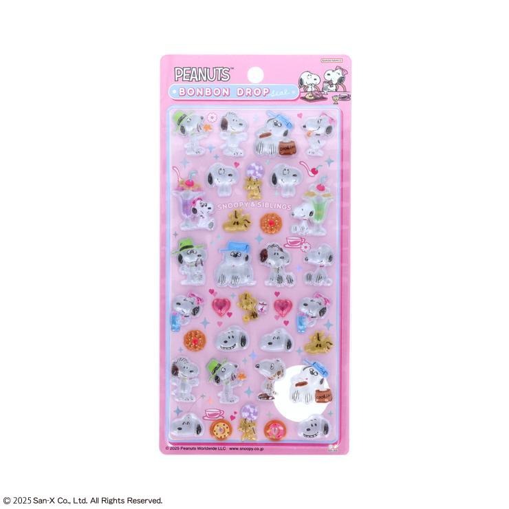 ころんとして可愛いシールがたくさん入った1シート入り。ごはんを食べて幸せそうな姿に癒される「スヌーピー&きょうだいたち」柄です。