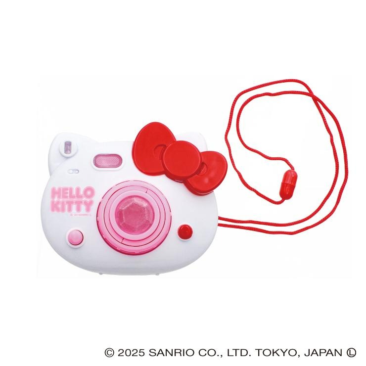 シャッターボタンを押すとカードが出る、ハローキティの顔の形をしたかわいいカシャプリカメラです。カードの裏面に写真などを貼れば、本当に撮影したような気分が楽しめます♪持ち運びに便利なネックストラップ付き。対象年齢3歳以上。