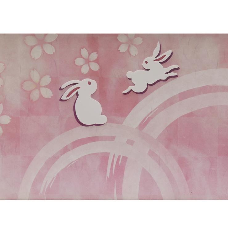 背景には、うさぎ達が楽しそうに遊ぶ様子が表現されています。間口38センチのコンパクトサイズです。