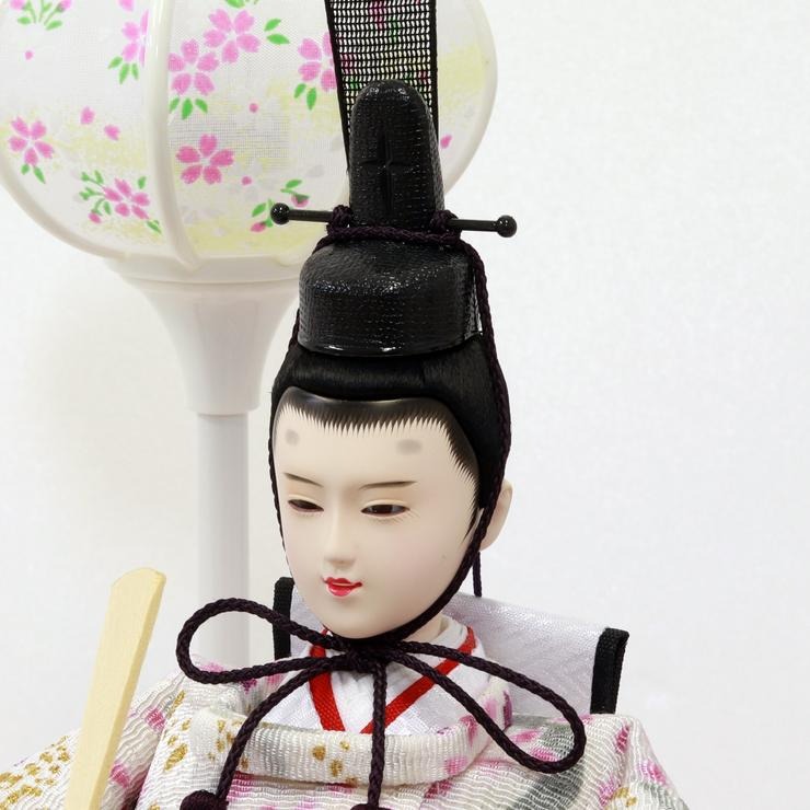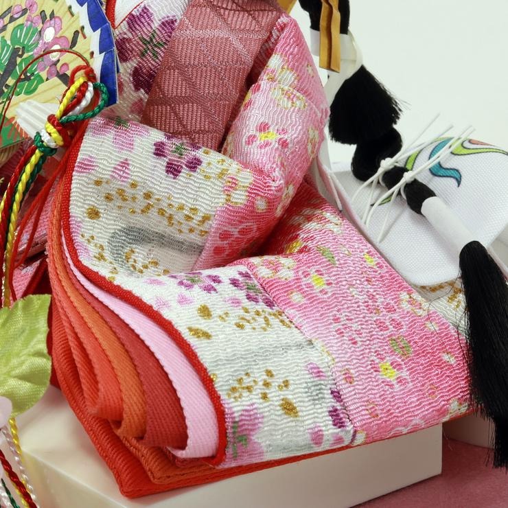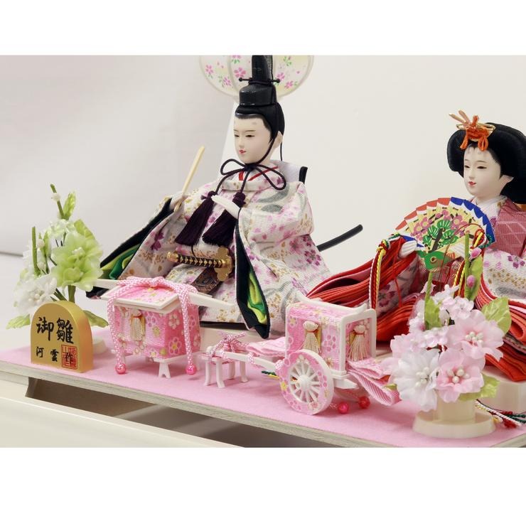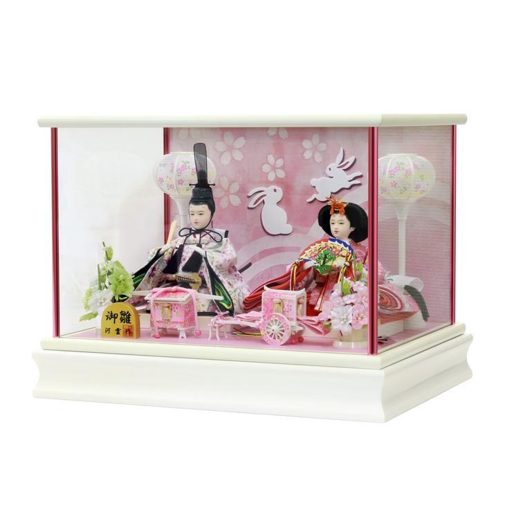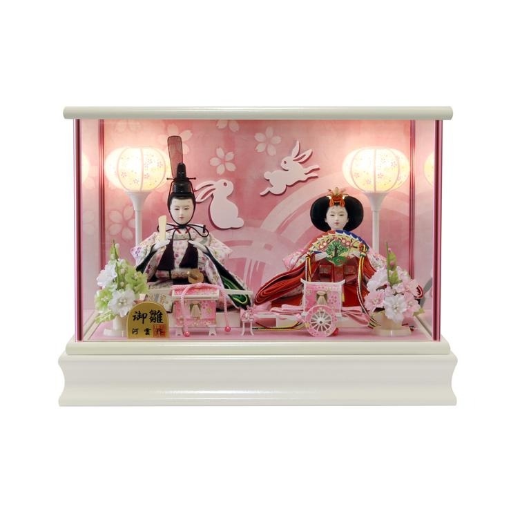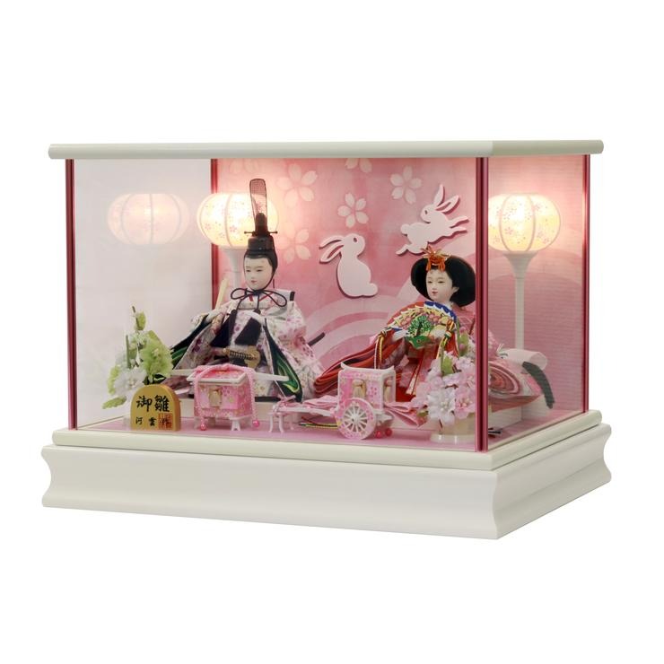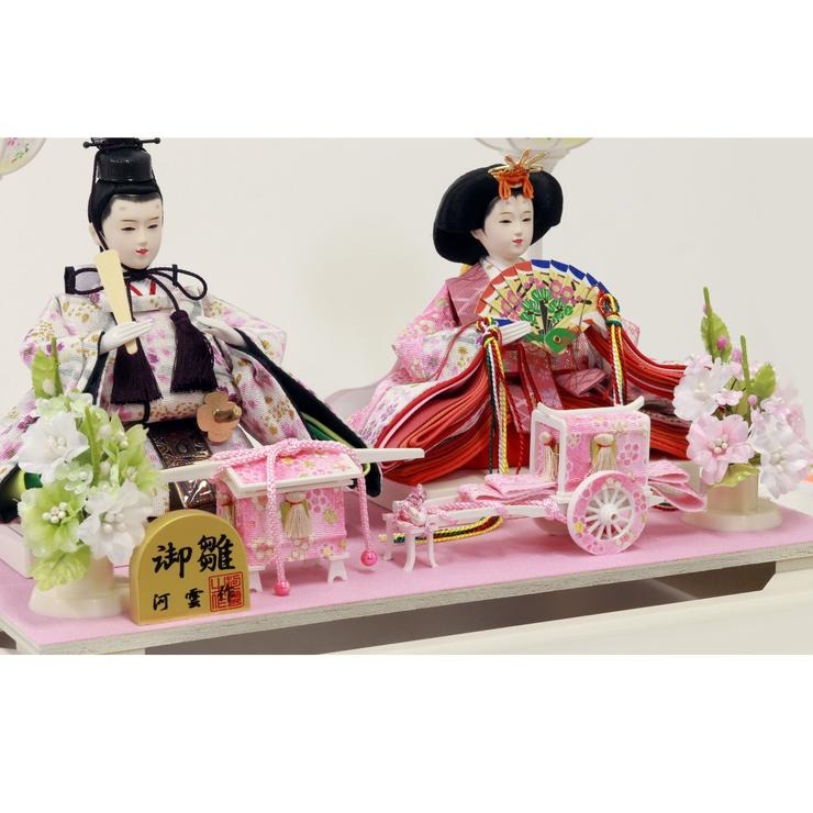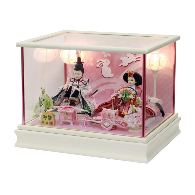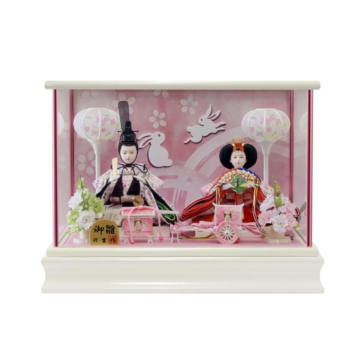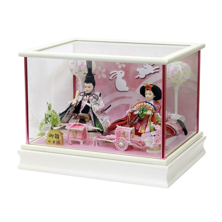 白塗りのケースにピンクの柱を合わせた、可愛らしい親王飾りです。